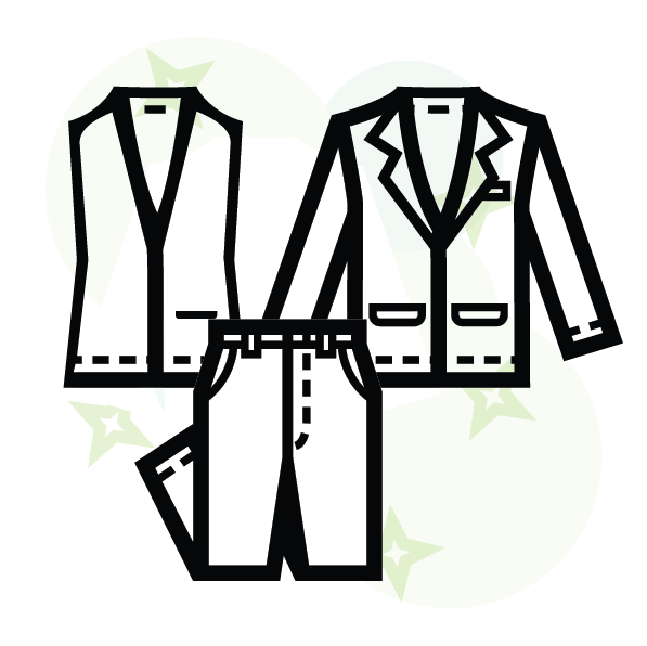 Professional cleaning and pressing for three-piece suits. Options for delicate materials included.